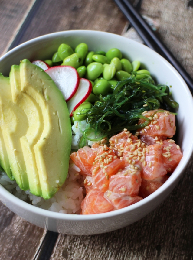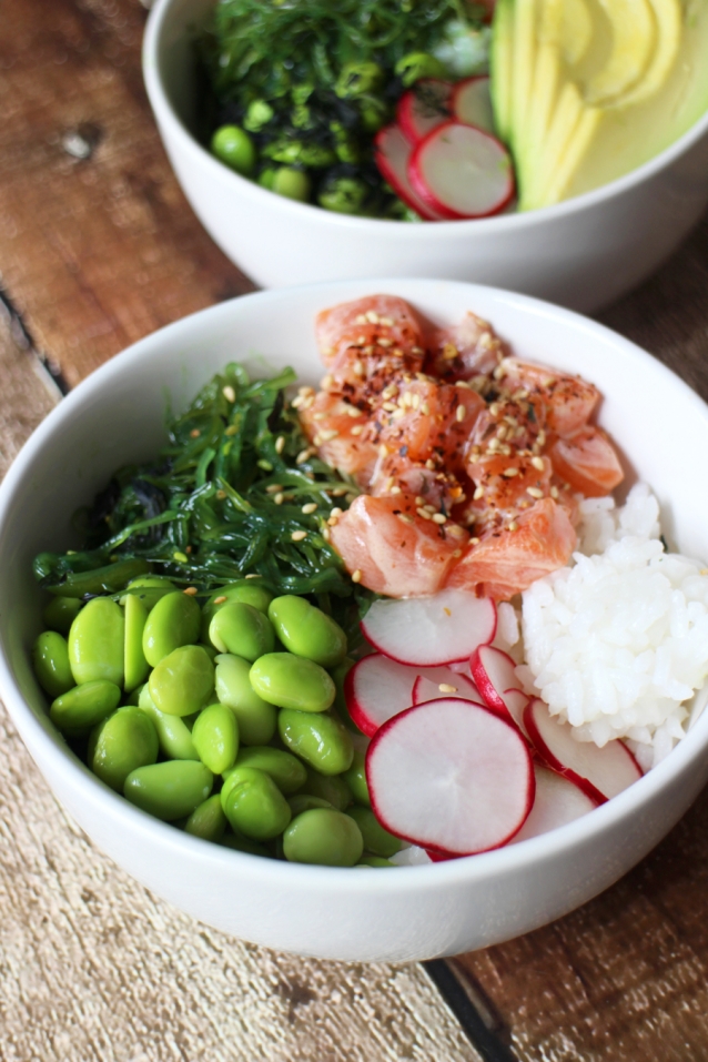 Poké bowls zijn al een tijdje je-van-het en wij snappen wel waarom: het is het makkelijke broertje van sushi en je kunt er zóveel kanten mee op. Wij maken vandaag een poké bowl met zalm, avocado, sojaboontjes en zeewiersalade.