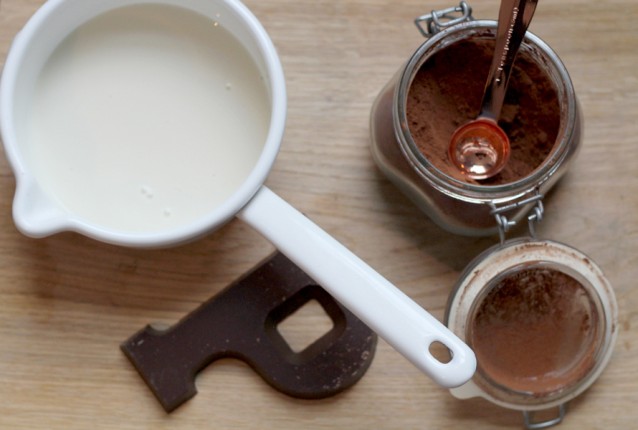 Dit is de basis: de chocoladeletter, melk en cacao.