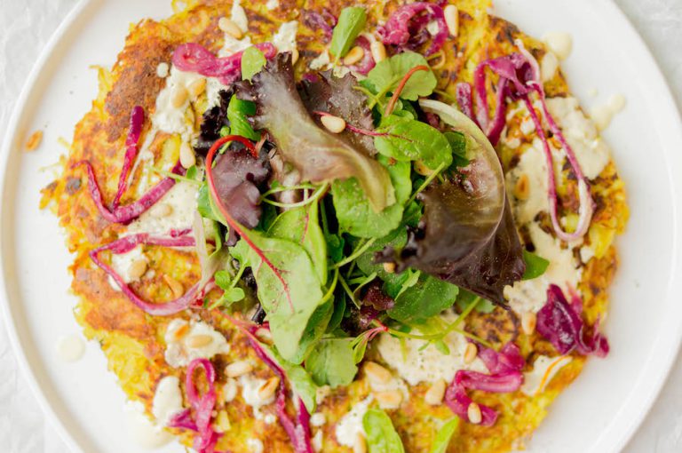 Wij geven een Midden-Oosterse twist aan deze zelfgemaakte rösti en serveren ‘m met saffraanyoghurt, (mini) snijbiet en gekarameliseerde rode ui.