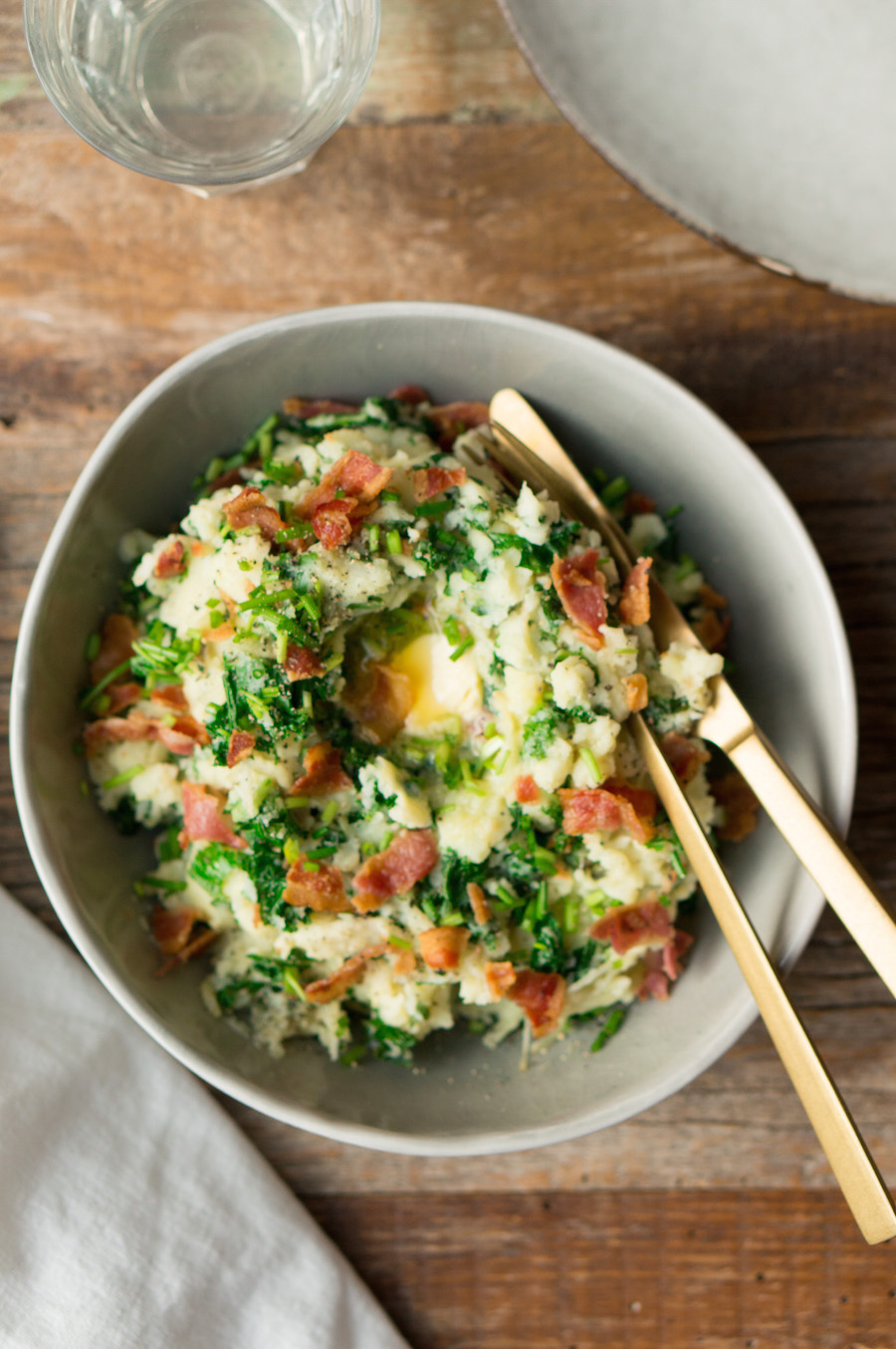 Deze stamppot met witte kool, boerenkool en bacon is perfect voor dagen dat je de hele dag in pyjama op de bank wil hangen. Je weet wel: van die dagen als derde kerstdag, als er al zó veel is gekookt en gegeten, dat je gewoon een troostend prakkie wil. Zonder teveel gedoe.