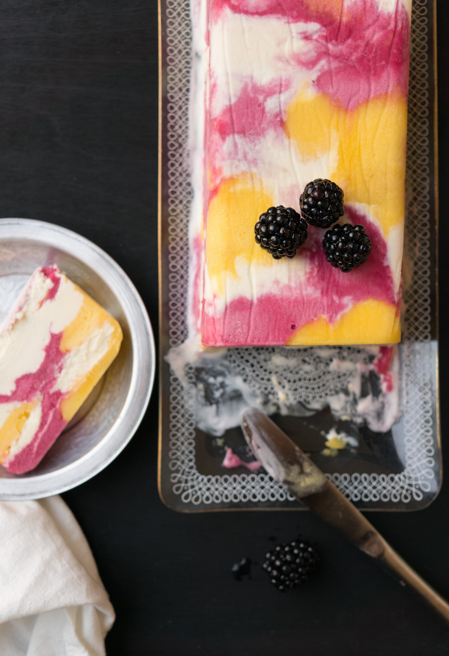 Het enige wat je nodig hebt voor deze supermakkelijke ijstaart is een cakeblik en drie soorten ijs. Wij gebruikten kant-en-klaar vanille-ijs, mangosorbetijs en bosvruchtensorbetijs. Van de vanille heb je de grootste hoeveelheid nodig.