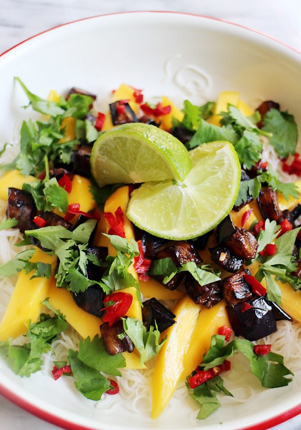 Thaise mihoensalade met mango, aubergine en koriander