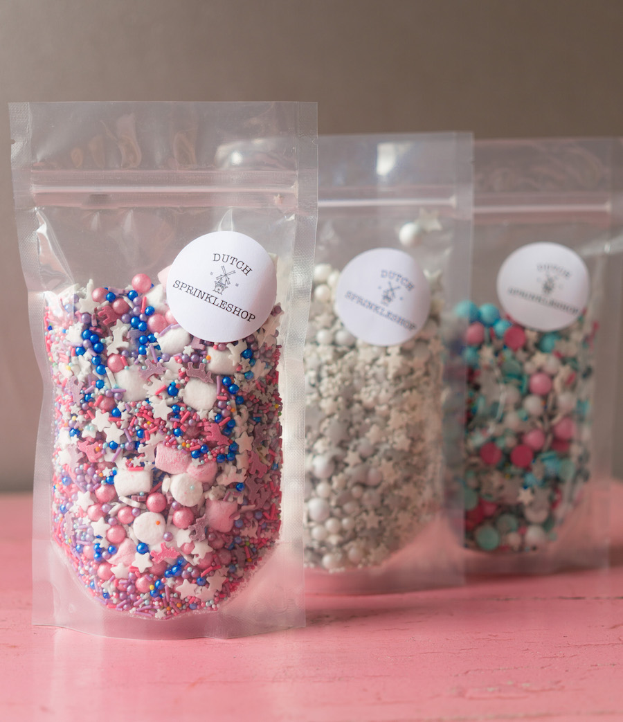De leuke sprinkles die we gebruiken zijn van Dutch Sprinkle Shop. Zij maken de toffe, betaalbare sprinkle blends die ze in Nederland nooit konden vinden, geïnspireerd op trends uit Amerika.