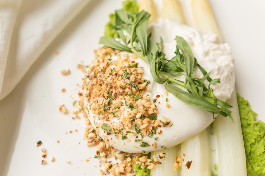 Wist je dat witte asperges en burrata heel goed bij elkaar passen? Romige zuivel en het witte goud zijn een match made in heaven. Zo maakten wij witte asperges met een twist: eens niet met ei en boterige saus, maar met burrata, doperwtenpuree en dukkah van amandel en dragon. Om je vingers bij af te likken.