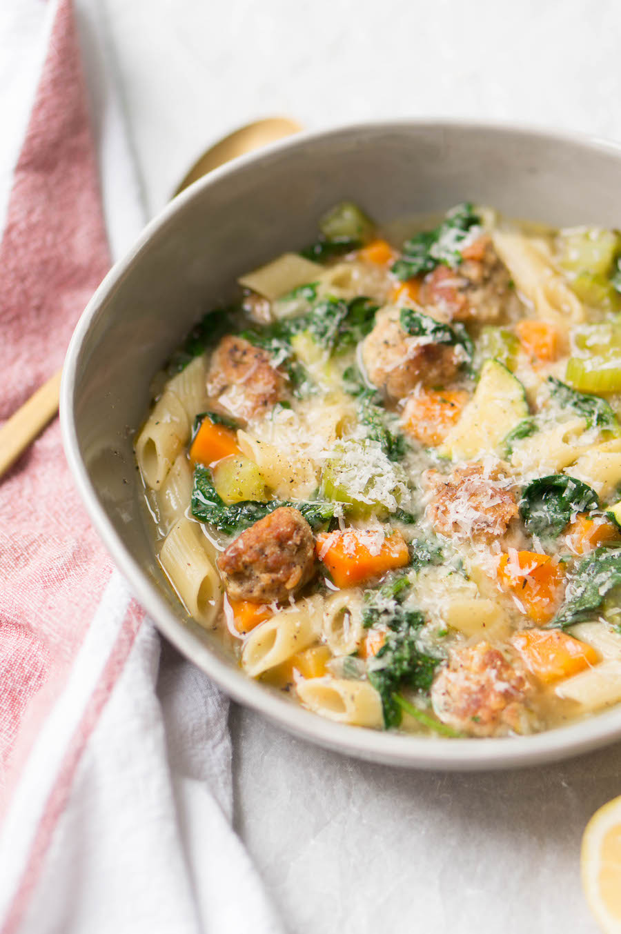 Tip: je kunt deze minestronesoep ook in een vegetarische versie maken. Vervang het kipgehakt voor de gehaktballetjes dan door tofu en prak die fijn met een vork. Werkt prima!