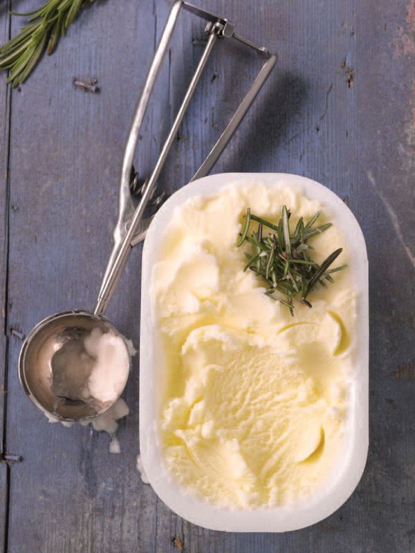 Vandaag daarom alvast een klein voorproefje uit IJs, namelijk het recept voor rozemarijnijs. Het klinkt misschien een beetje vreemd, maar het smaakt meer dan lekker! Carlina: ‘Ik heb geen groene vingers, mijn planten- en kruidentuintje overleeft dan ook nooit lang. Temperatuur, zon of andere weersomstandigheden lijken de oorzaak. De enige plant die het bij mij altijd goed doet, is rozemarijn. Zomer of winter, tuin of balkon, in Italië en zelfs in Utrecht. Geen wonder dat rozemarijn in mijn gerechten vaak in meer of mindere mate wordt verwerkt.’