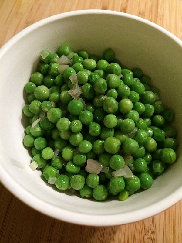 Als de kip klaar is, haal je deze uit de oven en laat je nog even rusten (in aluminiumfolie, met de glimmende kant naar binnen). In die tijd kun je precies de doperwten smoren. Snipper de sjalot helemaal fijn en fruit deze in een koekenpan. Doe de doperwten erbij en schenk er bouillon bij totdat de doperwten net onder staan. Laat de doperwten 8-10 minuten smoren totdat ze net gaar zijn. Giet de inhoud van de pan in een vergiet en serveer daarna de doperwten met de stukjes sjalot.