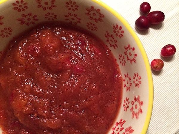 De appel-cranberrycompote kun je al tot twee dagen van tevoren maken. Schil de appels en snijd ze in stukken. Doe deze samen met de cranberry’s in een pannetje en schenk er water bij totdat ze net onder staan. Breng aan de kook en laat daarna op zacht vuur pruttelen gedurende 20-30 minuten.