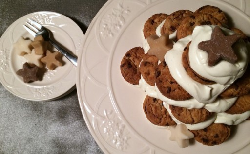 Tip voor de volwassenen: mocht je deze chocoladekoekjes kerstboom nou alleen voor grote mensen gaan maken, roer dan ook nog een flinke scheut Baileys door de slagroom en mascarpone voordat je gaat kloppen.