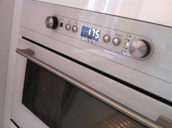 Stort het beslag voorzichtig in een met bakpapier beklede en met boter ingevette lage bakvorm en bak 30 minuten in een op 175 graden Celsius voorverwarmde oven. Bij een heteluchtoven zet je hem op 150 graden. Let op: elke oven werkt anders, soms moeten de brownies wat langer. Doe de naalden/sateprikkertest: aan de zijkant van de brownie moet ie er droog uitkomen, in het midden nog een beetje nat.