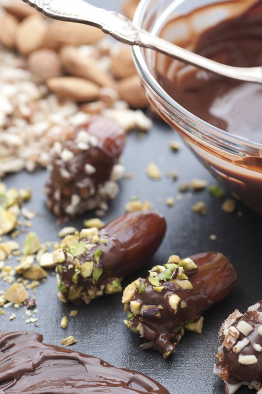 Dadels, oh, we kunnen ze blijven snoepen. Vooral die heerlijke verse Medjoul-dadels van de Turkse winkel. Voor dit recept kun je verse, maar ook gedroogde gebruiken. Heerlijk gedipt in chocolade en bestrooid met nootjes; perfect voor bij de (Arabische) koffie!