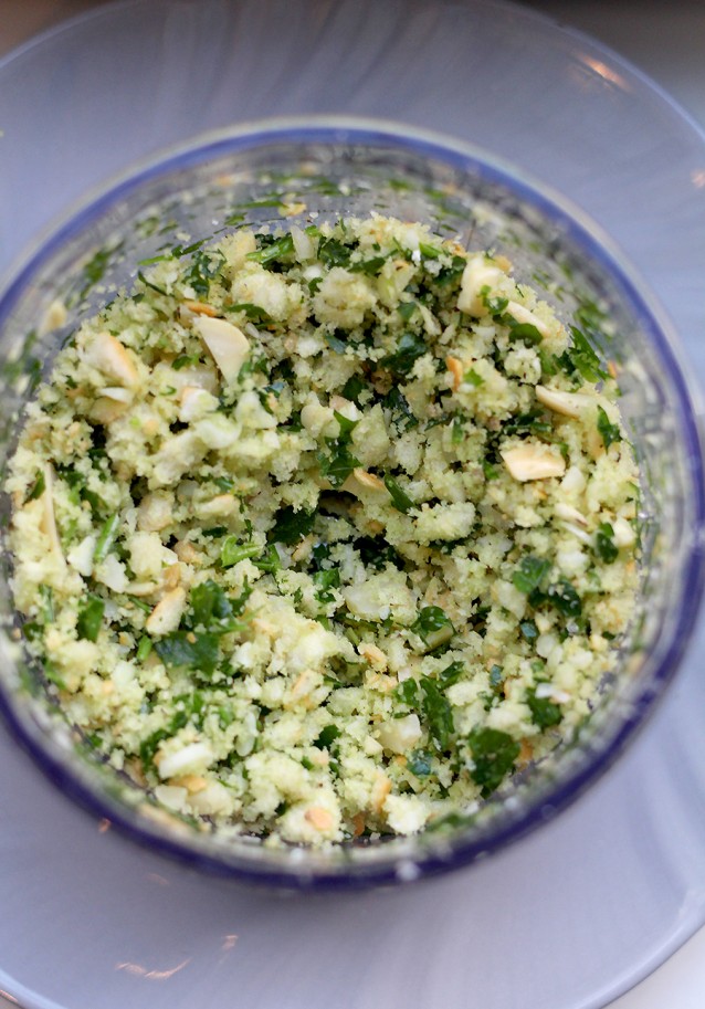 Je kunt natuurlijk eindeloos variëren met deze topping. Basilicum in plaats van peterselie, andere noten erin, een snuf cayennepeper…