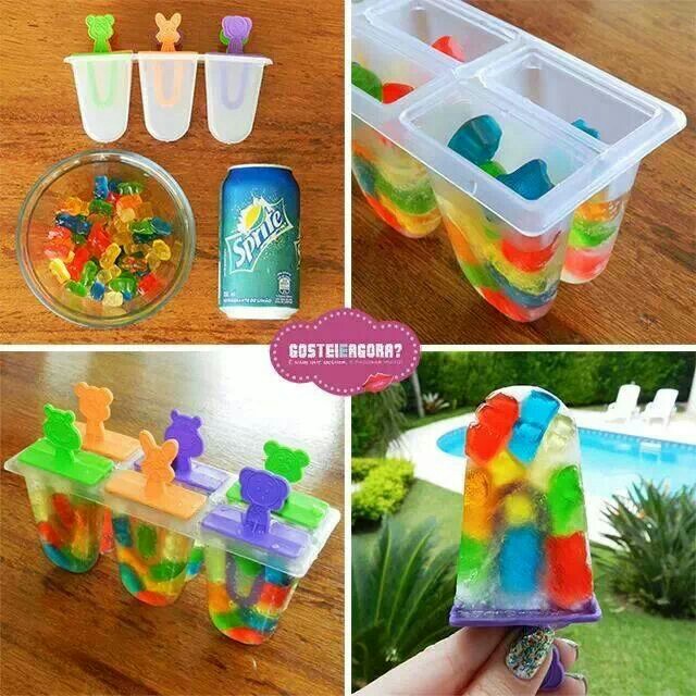Doe de gummybeertjes in een ijsvormpjes, vul af met Sprite en zet een paar uurtjes in de vriezer. Enjoy!