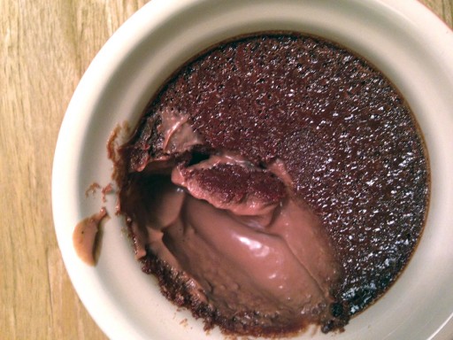 Zet 30-35 minuten in de oven, haal de kleine schaaltjes dan voorzichtig uit de met water gevulde ovenschaal en laat afkoelen op het aanrecht. Zodra ze op kamertemperatuur zijn, zet je ze in de koelkast. Liefst minimaal een uur, maar een nachtje kan ook (als je het vast maakt voor de volgende dag). Serveer met een lepel opgeklopte slagroom. Enjoy!