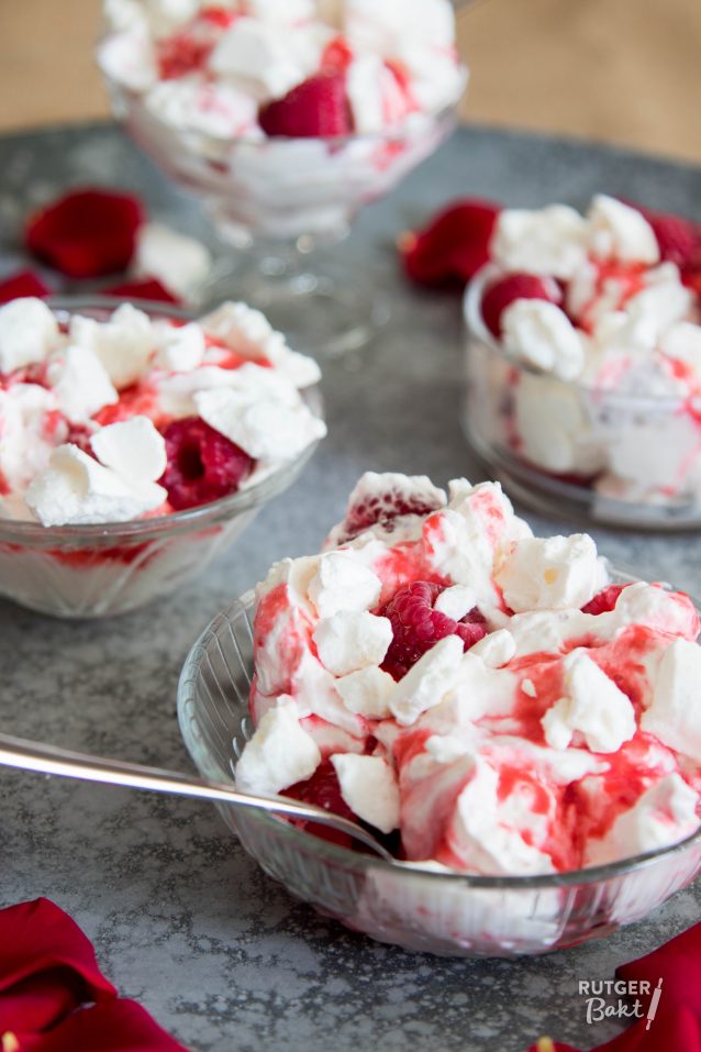 Eton mess met rozen en frambozen van Rutger