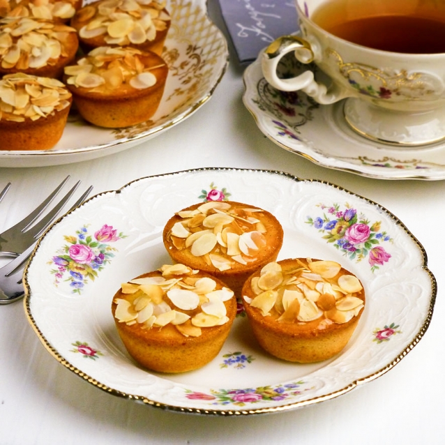 Een heerlijke versnapering: financiers met abrikozenjam en geroosterde amandelen. We kregen dit fijne recept van Menuopmaat.nl.