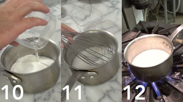 Zet alle ingrediënten klaar, zo kan je alles gelijk pakken wanneer je het nodig hebt. Begin met het maken van de ganache (vulling) door het 5-kruidenpoeder te mengen met de kaneel en slagroom in een pannetje, breng het aan de kook.