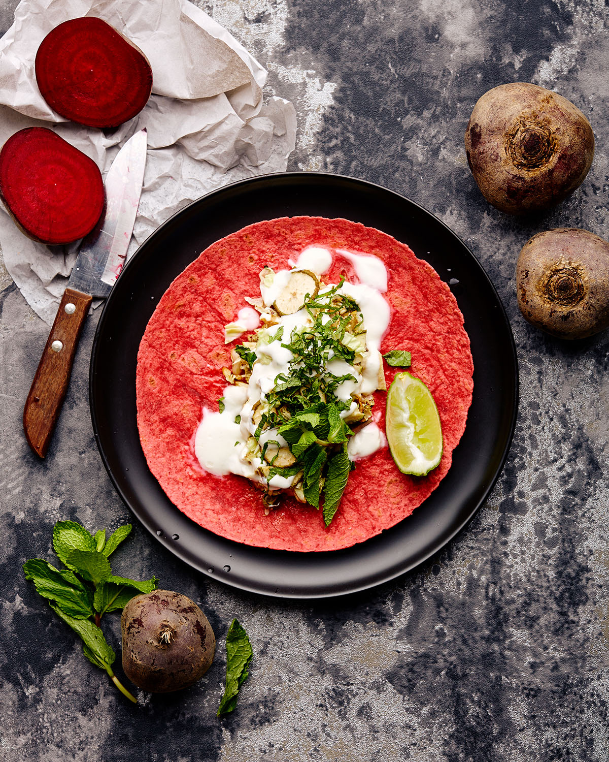 Zelf tortilla’s maken: frisse rode bietentortilla met koolsla
