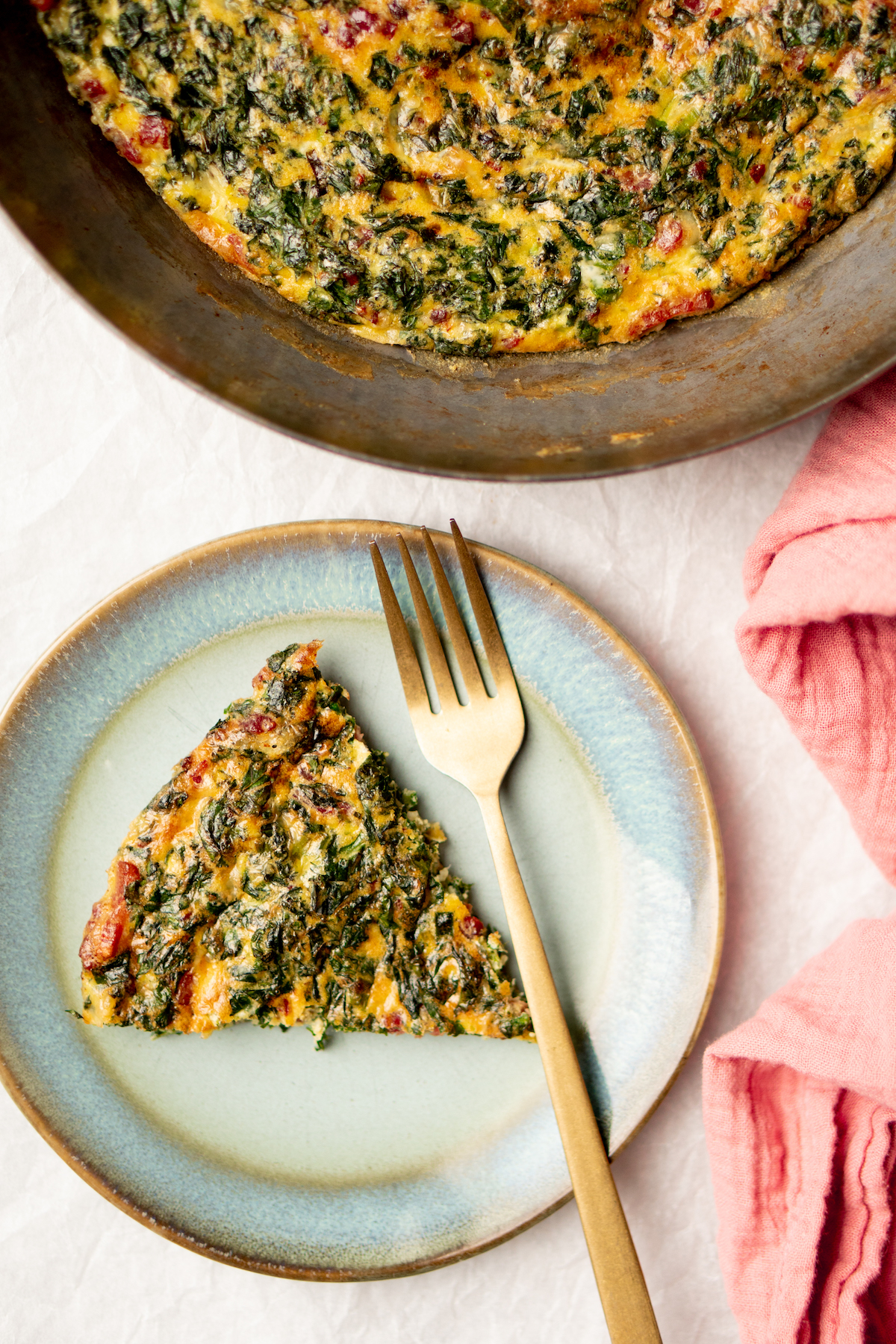 Boerenkool met spekjes: een topcombi voor een stamppotje, maar ook heel lekker als frittata! Deze frittata met boerenkool en spekjes is een ode aan ons geliefde stamppotje boerenkool. En bovendien een ideale manier om kliekjes op te maken.