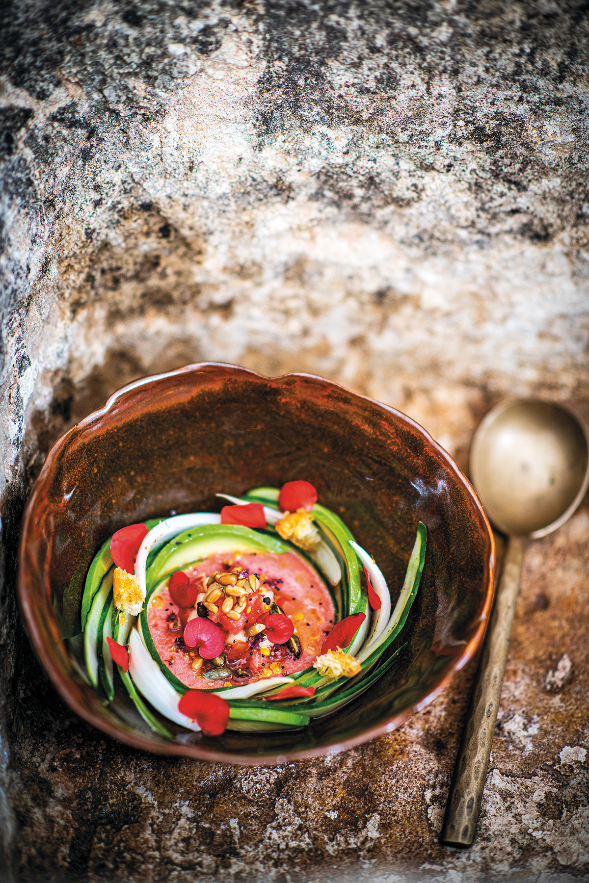 Gazpacho Ibiza met watermeloen en avocado van Sergio Herman