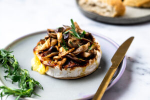 Eenpersoons kaasfondue uit je airfryer: gebakken camembert met paddenstoelen