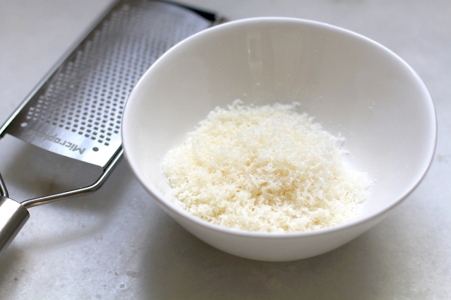 Pak je beste koekenpan met anti-aanbaklaag. Let op: zonder gladde anti-aanbak lukt dit recept niet, want je hebt dat écht nodig. Rasp de kaas met je allerfijnste rasp (een Microplane is hier ideaal voor), het moeten echt fijne krulletjes zijn.