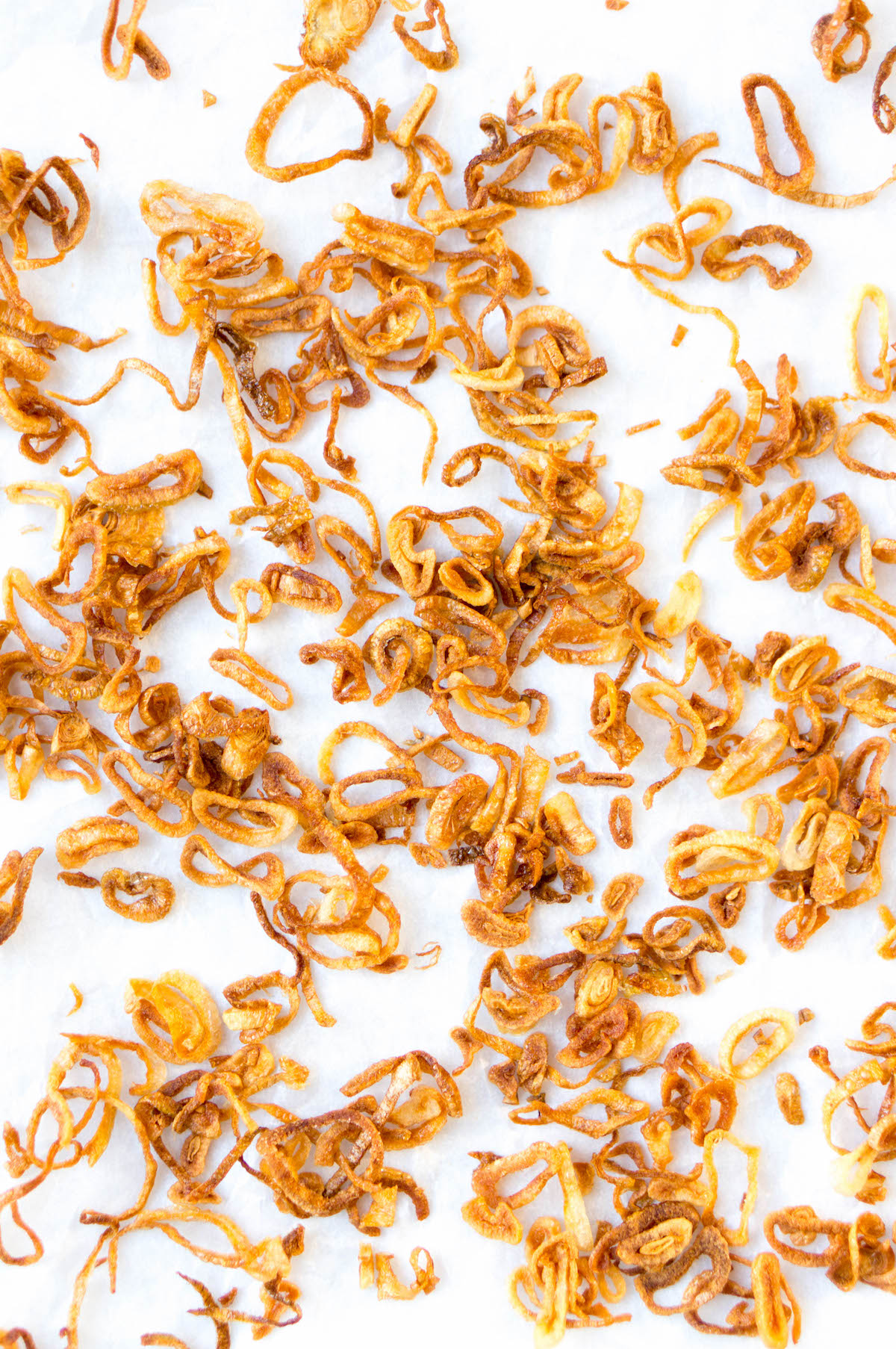 Onmisbaar in de Aziatische keuken: gebakken uitjes. Je kunt ze kant-en-klaar kopen, maar zelfgemaakt zijn ze het allerlekkerst.