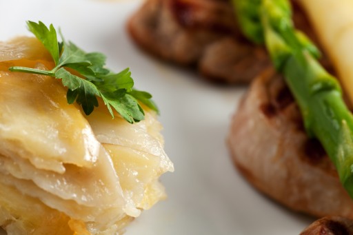 Schep op elk torentje een lepel crème fraîche voordat ze de oven ingaan. Bak het 35 minuten op een temperatuur van 200 graden. Laat het vervolgens 5 minuten rusten, haal de aardappeltorentjes uit de vormpjes en garneer met peterselie.