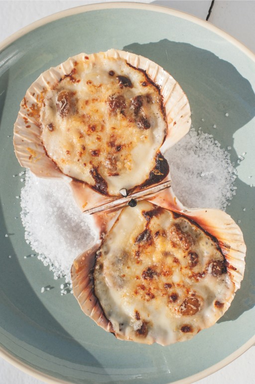 Dit heerlijke recept voor gegratineerde coquilles saint-Jacques komt uit het geweldige boek Werken met vis van Bart van Olphen.