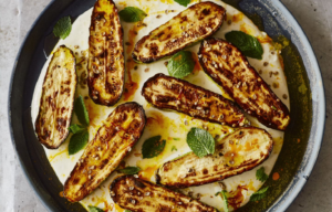 Gegrilde courgettes met warme yoghurt en saffraanboter van Ottolenghi