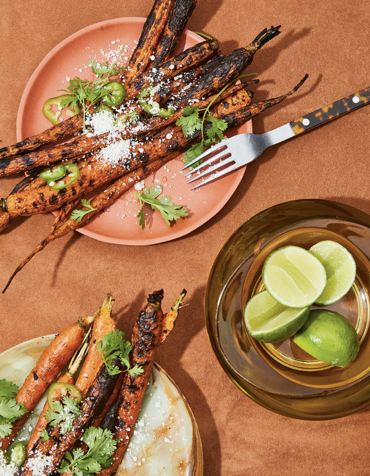 Culinair geluk zit ‘m soms in hele simpele dingen, zoals in deze perfect gegrilde wortels van Alison Roman. Ze serveert ze in een pittige saus met Cotija (Mexicaanse kaas, eventueel te vervangen door ricotta of feta). Daardoor krijgen ze een Mexicaans tintje en zijn ze het perfecte, spannende bijgerecht.