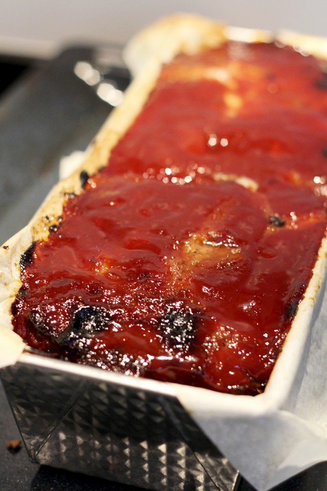 Als het gehaktbrood 30 minuten in de oven heeft gestaan, giet je de saus over de bovenkant – eventueel mooi verdelen met een kwastje. Zet het gehaktbrood weer terug en bak weer 30 minuten. Wil je checken of -ie echt goed gaar is, gebruik dan een kernthermometer om de juiste temperatuur te meten: in het midden moet dat zo’n 65-70 graden zijn.