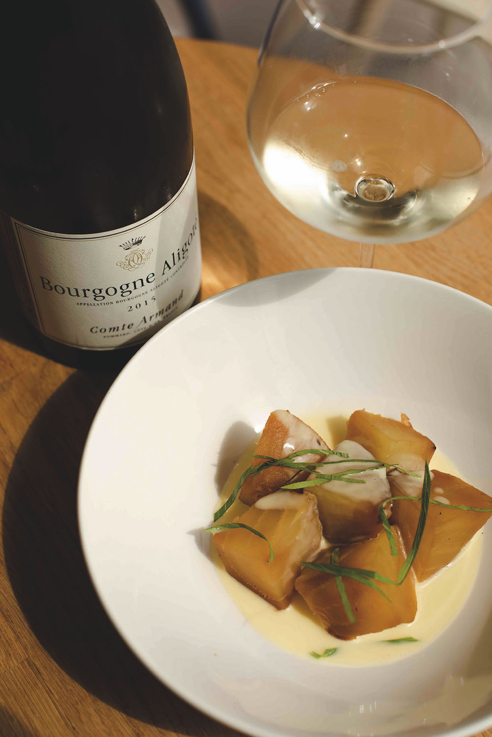 Gele biet met beurre blanc van Restaurant Entrepot in Amsterdam