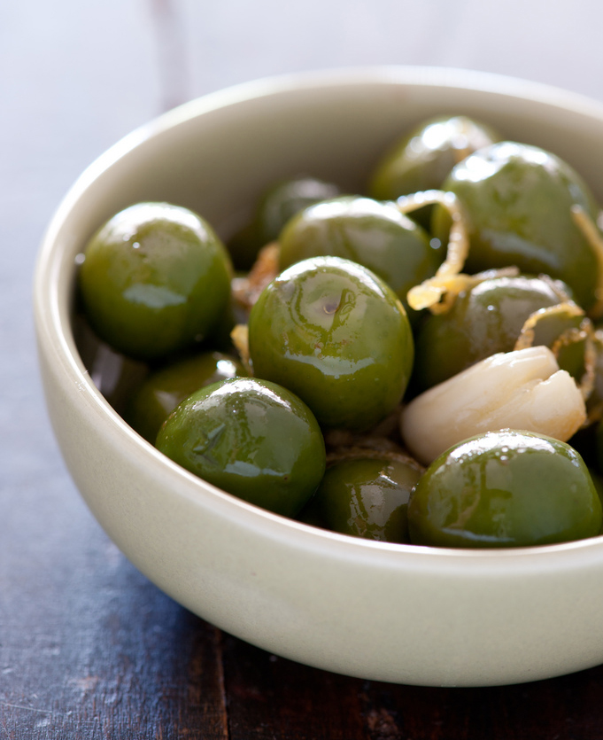 Neem een glazen potje (of desnoods een plastic bakje) en vul met 500 gram olijven. Gewone olijven, nothing fancy,Ā liefst met de pit er nog in (meer smaak!), maar pitloos kan ook. Je kunt een mix maken van je favoriete olijven; van grote groene tot kleine paarse. Onze tip: hoe harder de olijven, hoe beter je ze kunt marineren. Hele zachte olijven worden sneller papperig.