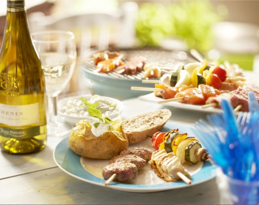 Op een zonnige zomeravond, lekker met vrienden rond de barbecue met een kip-, zalm- tartaar- en groentespiesje. Heerlijk met een salade, appelcompote, bruin stokbrood, pofaardappel en gezonde sausjes…
