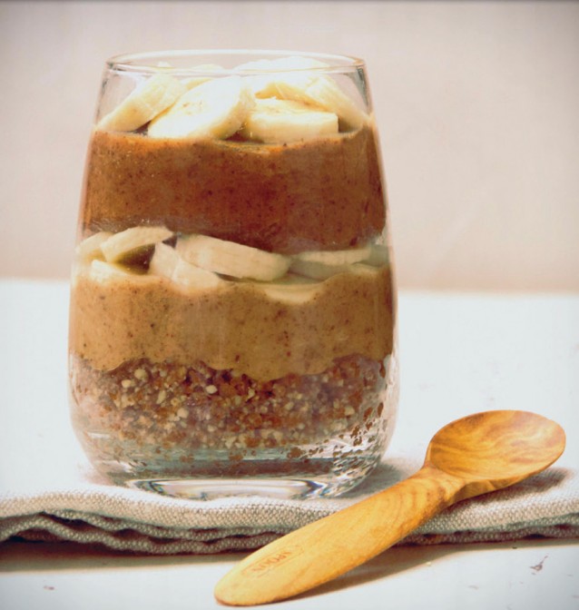 Gezonde banoffeetaart in een glaasje van Ella Woodward