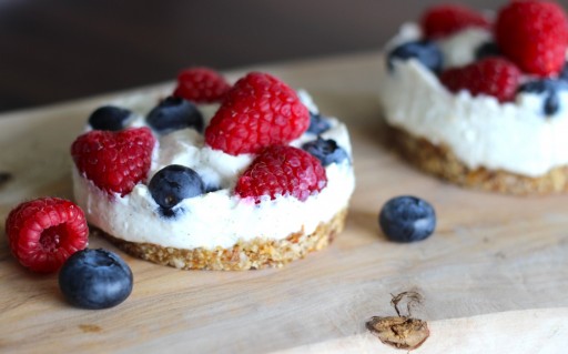 “Door het gebruik van een bodem gemaakt van onder andere noten, dadels en havermout, een romige laag van ricotta en een topping van heerlijk vers fruit, heb je in een handomdraai een verantwoorde, gezonde cheesecake gemaakt, om je vingers bij af te likken!”