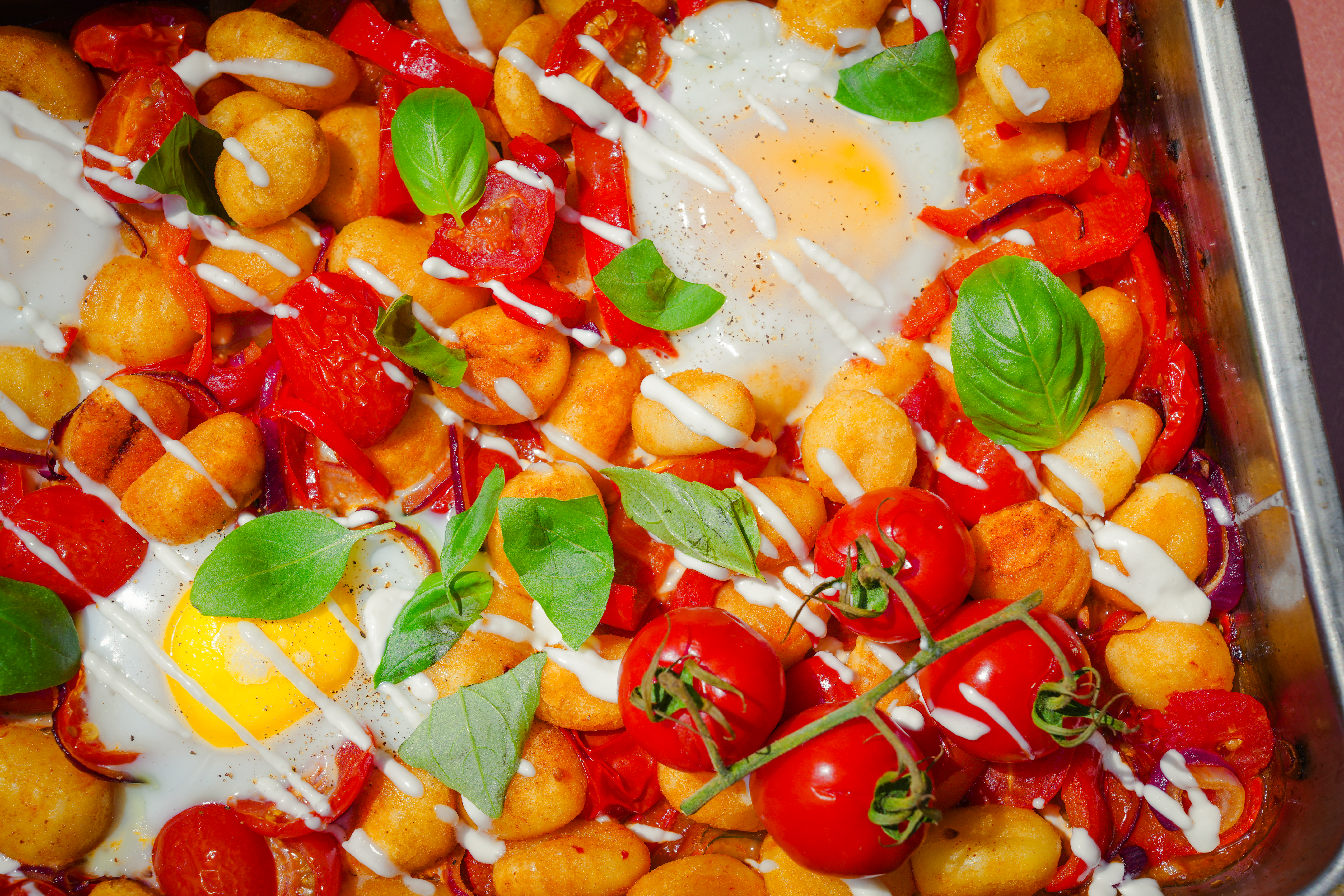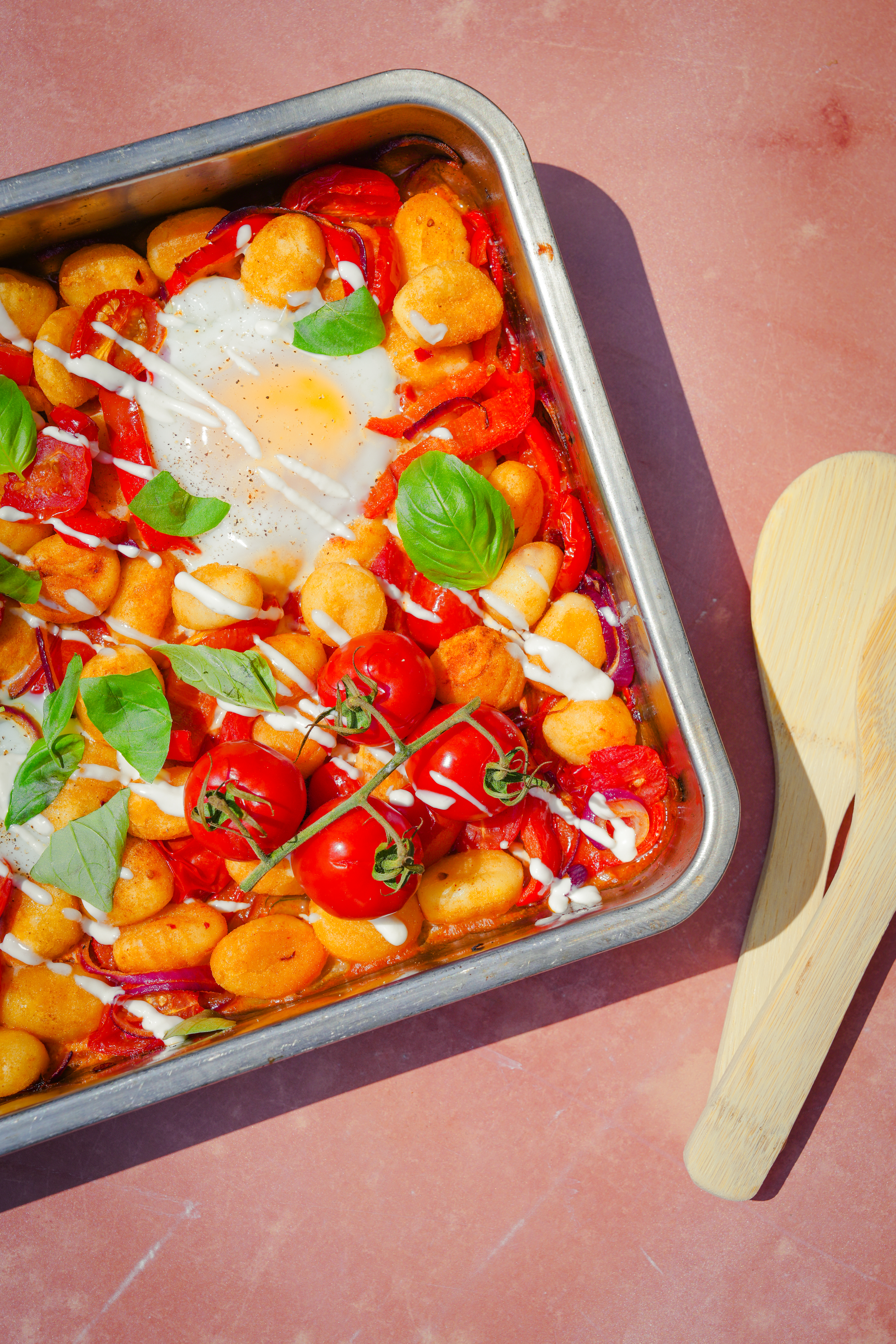 Zin in een gerecht dat nét even anders is dan anders? Bij dit gnocchirecept zit de magie ‘m erin dat we de gnocchi bakken op een bakplaat met puntpaprika, cherrytomaatjes en pittige chili. Het is geïnspireerd op de klassieke piperade, maar dan met een knapperige twist.