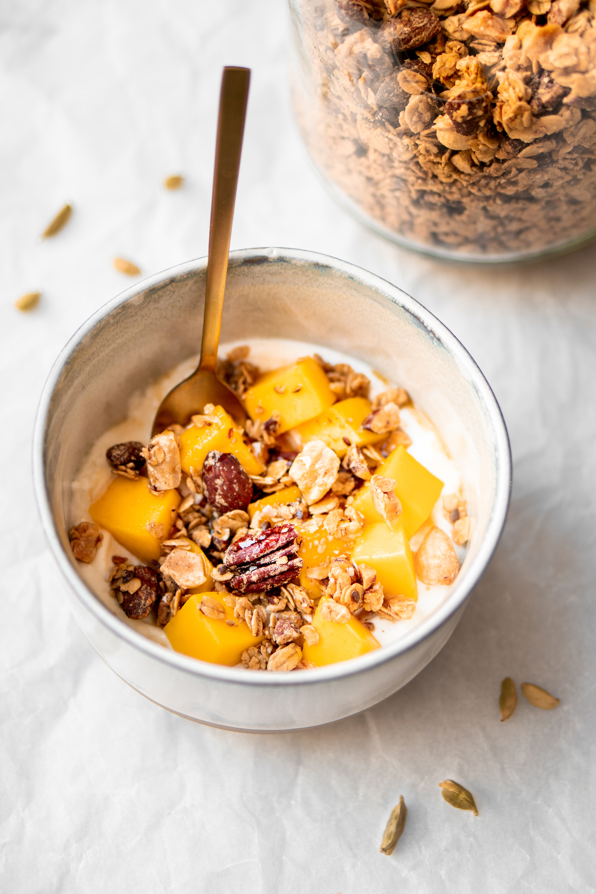 Granola met tahin en kardemom (lekker met mango en yoghurt)