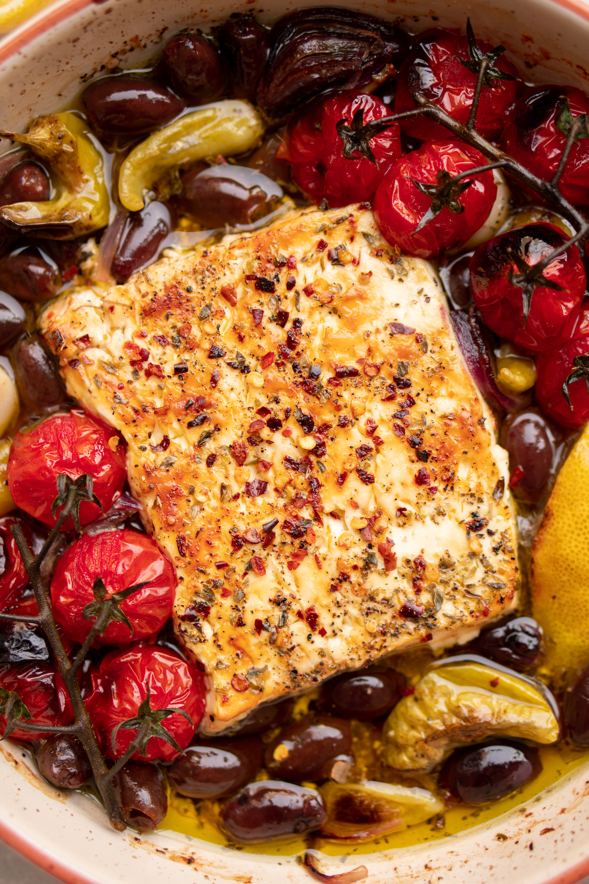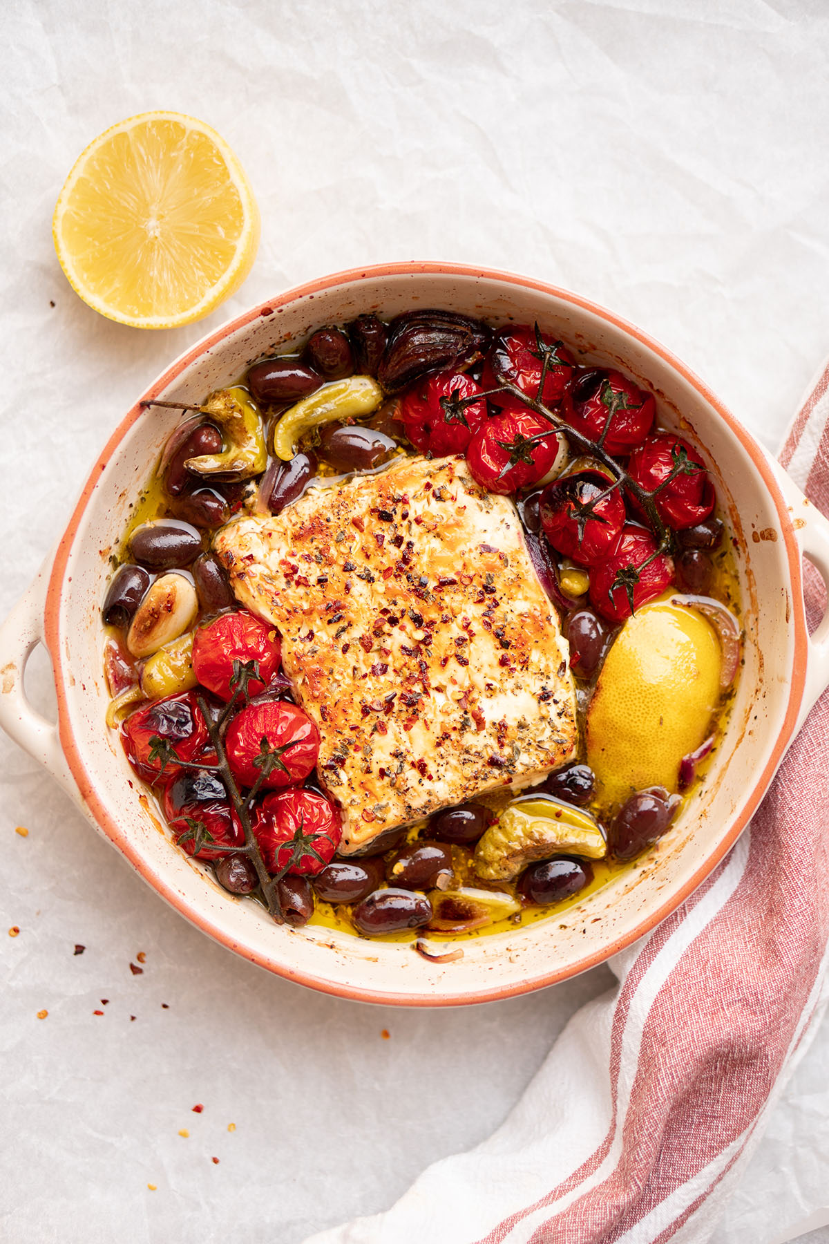 Instant vakantiegevoel coming right up! Want met deze Griekse gebakken feta uit de oven waan je je op een idyllisch Grieks eiland. Zo eentje met witte muurtjes, hemelsblauwe deurtjes, bloesembomen en de zee op een steenworp afstand. En dat gewoon in eigen land!