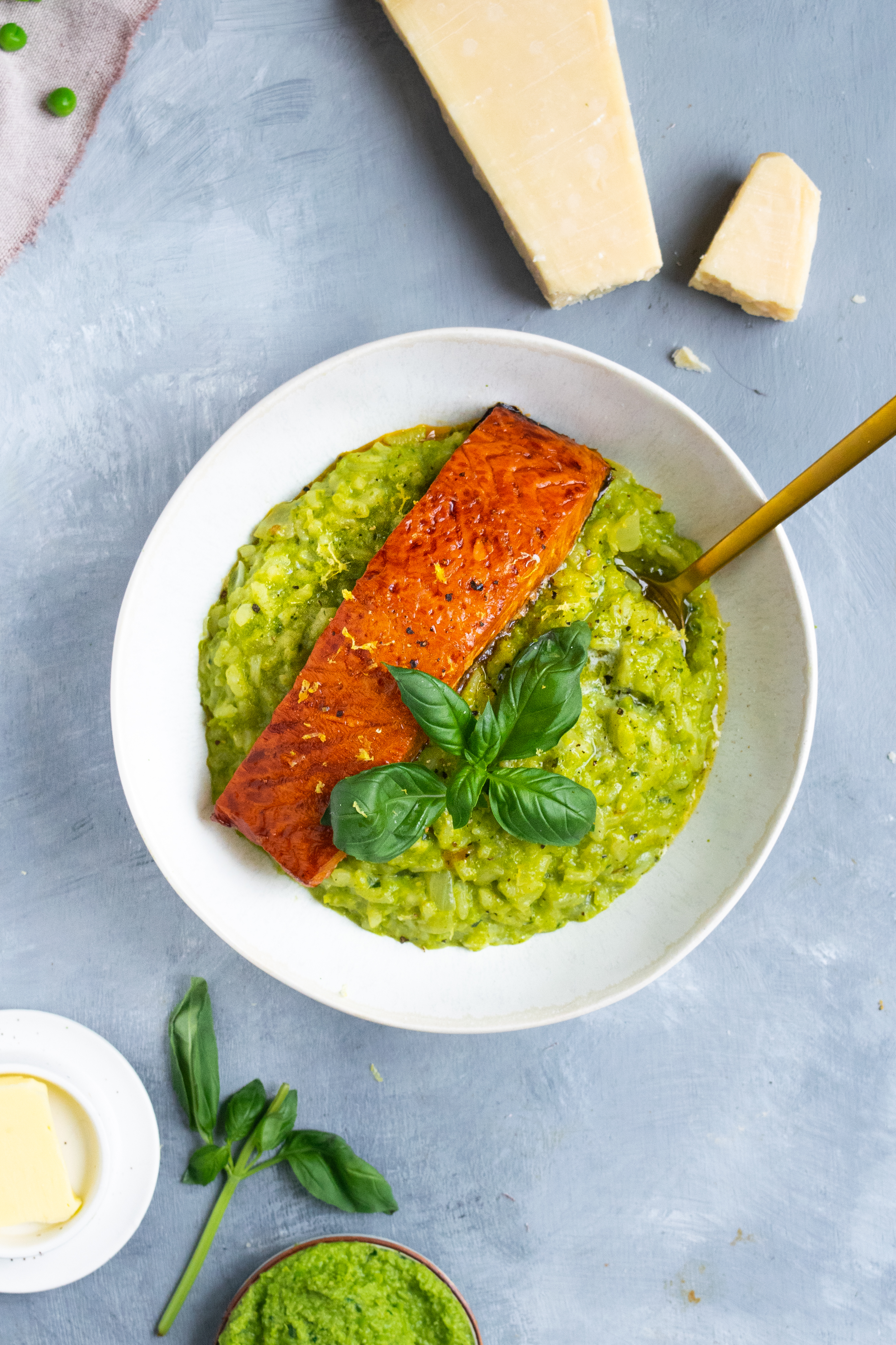 Hou je van een beetje competitie? Hier komt ‘ie: wie de groenste risotto weet te bereiden, wint. Het enige hulpmiddel dat je krijgt is dit recept voor knalgroene risotto met een stukje zalm. Succes!