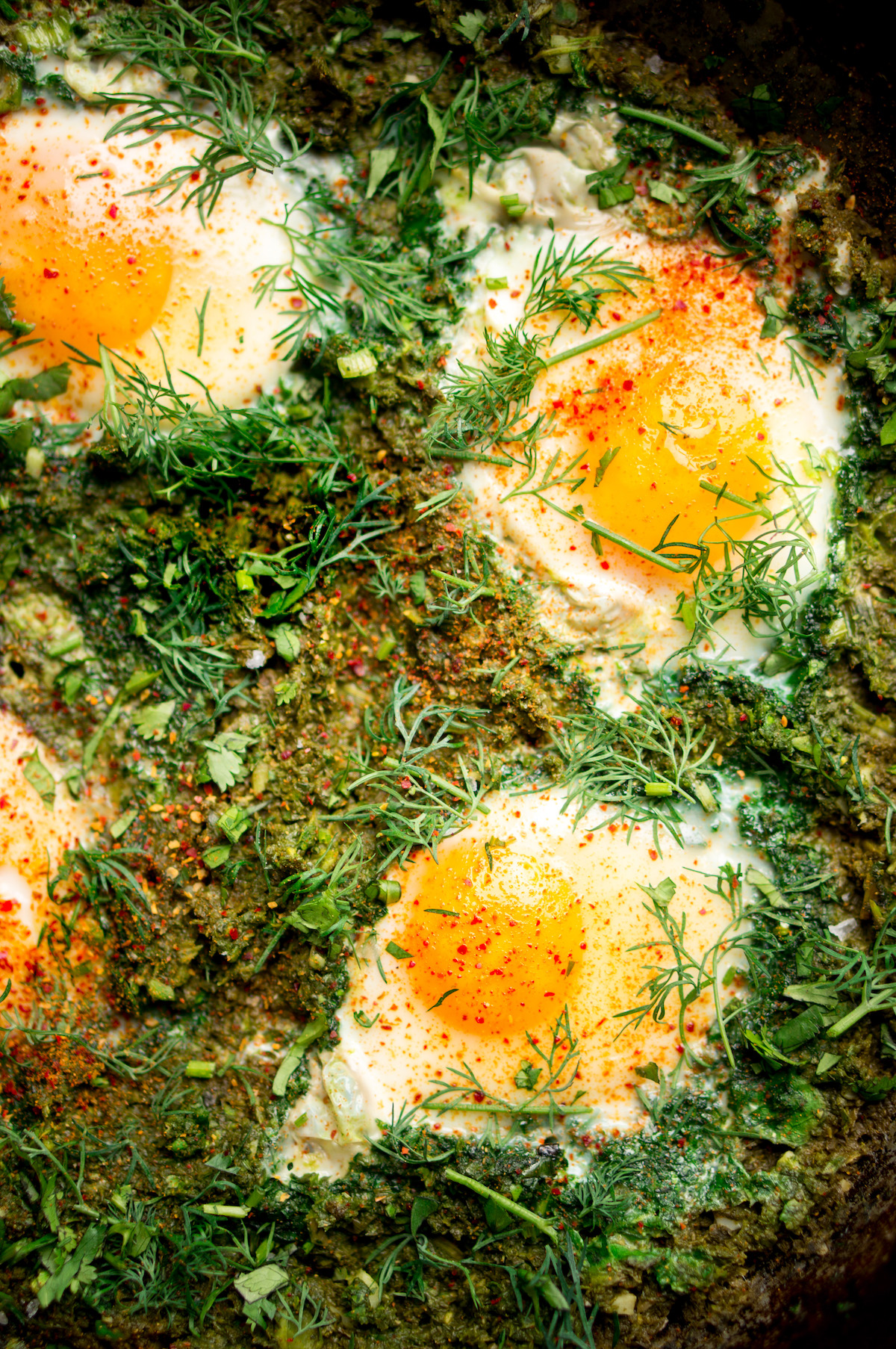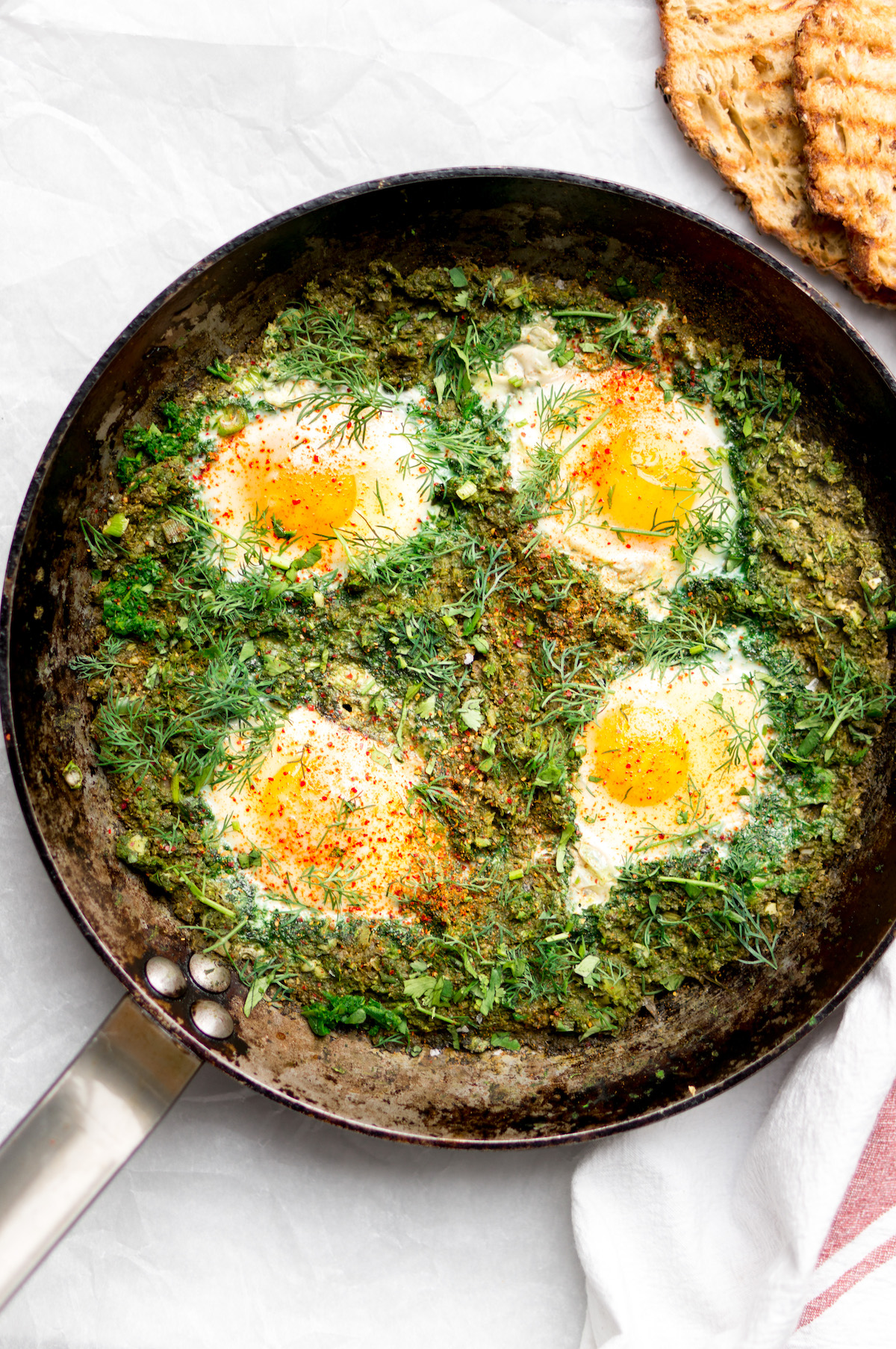 Vanwege zijn lente-achtige groene kleur is deze groene shakshuka ook heel geschikt voor de brunch of het kerst– of paasontbijt. Plus de hoeveelheden op als je ‘m voor meer personen wil maken (en gebruik een grotere pan ;).