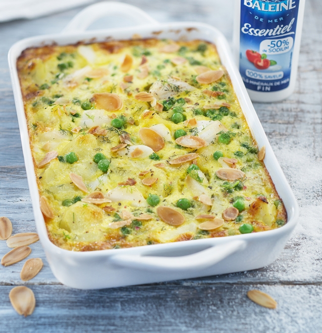 Dit heerlijke recept voor een hartige clafoutis van heek, aardappel en erwten kregen we van Baleine, het bekende zoutmerk. Een heerlijke twist op een klassiek gerecht!