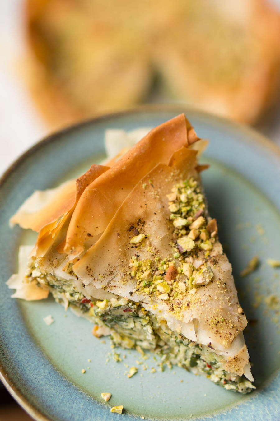Deze hartige taart met courgette gemaakt met filodeeg, is geïnspireerd op een recept van Yotam Ottolenghi. Máár we geven er een kleine Culy-draai aan met za’atar, ricotta en mooie groene pistachenoten.