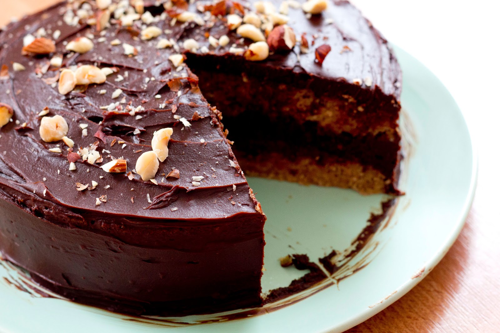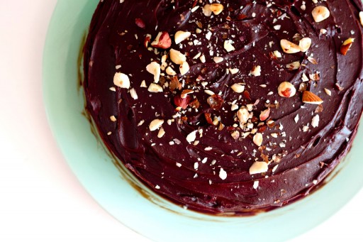 Bestrooi de taart als laatste met de laatste nootjes en zet hem een half uurtje in de koelkast om wat steviger te worden.
