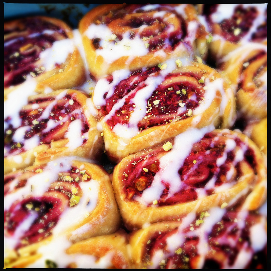 Plaats de schaal ongeveer 35 minuten in de oven of totdat de broodjes goudbruin zijn. Laat de frambozenbroodjes afkoelen.