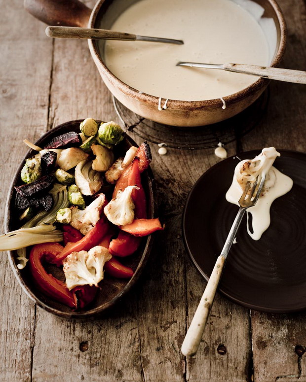 Serveer de fondue met de geroosterde seizoensgroenten.
