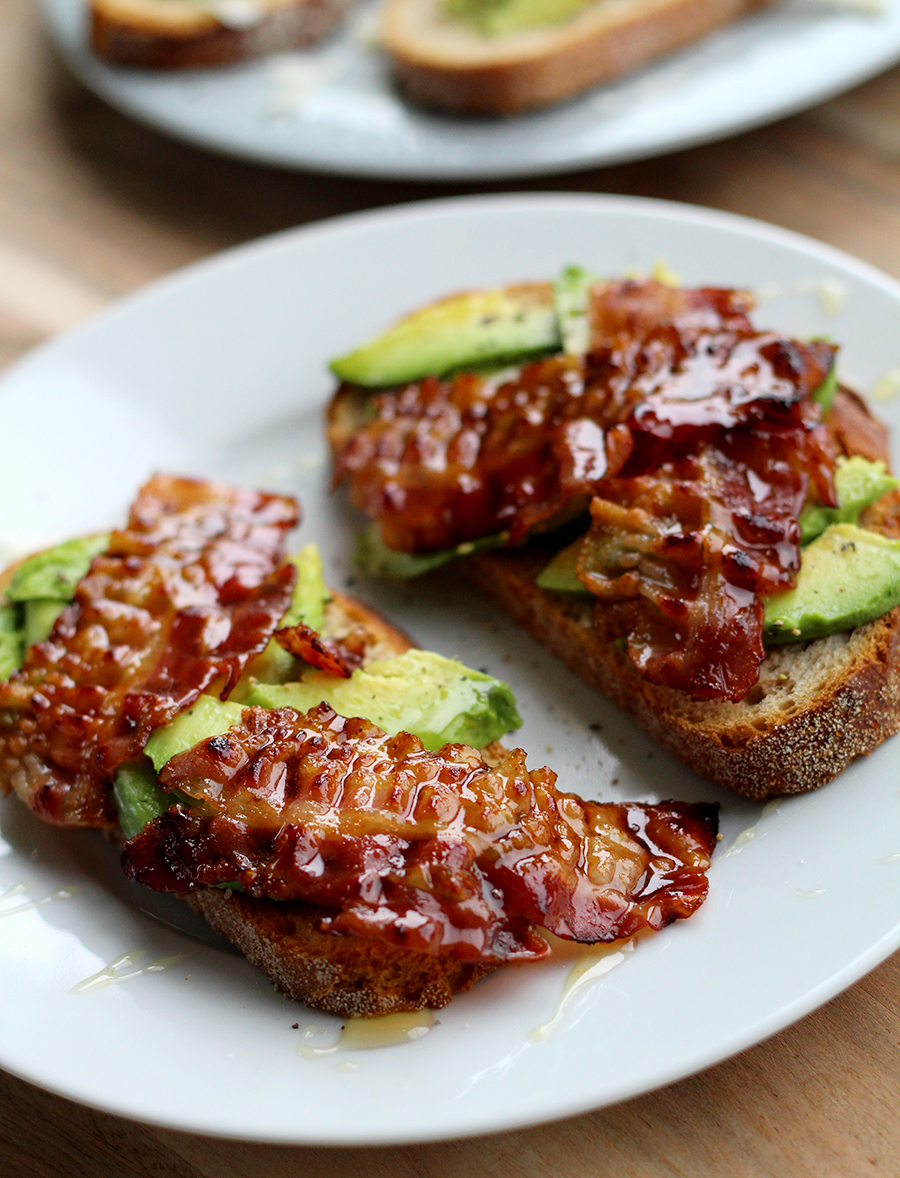 Dit is het ultieme guilty pleasure broodje: goed brood, romige avocado, krokant gebakken bacon en zoete honing. Geniet ervan!