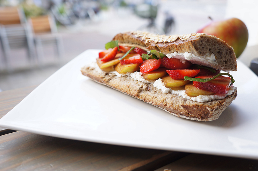 Hét zomerbroodje van Anne&Max is dit pérène brood (volkoren zuurdesem) met aardbei, limoenricotta, gemarineerde appel en munt. Zo lekker! Je kunt ‘m natuurlijk bij Anne&Max eten, maar ook zelf thuis namaken.