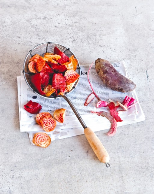 Dit heerlijke recept komt uit het boek Chips. Een boek vol recepten om zelf chips en snackjes te maken van groente en fruit, uitgegeven door uitgeverij Becht.